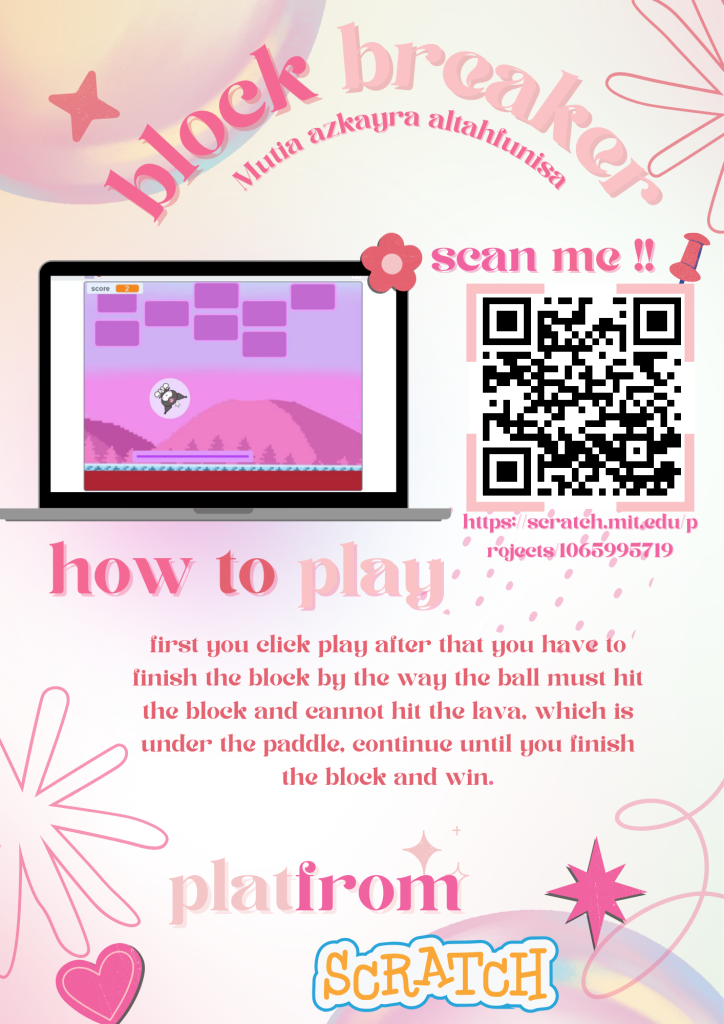 ˖⁺‧₊ Game block braker₊‧⁺˖ this is a game from the scratch platform The way to play is first you click play